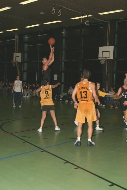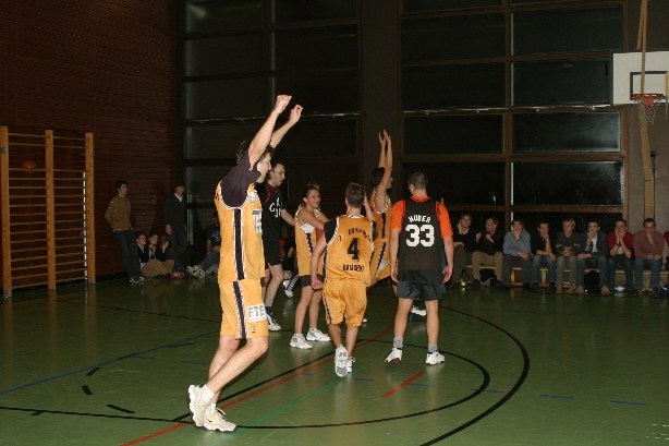 Der große Favorit "Chicken 'n' Steaks" mit der Erfahrung von 13 Endspiel-Teilnahmen traf im Endspiel somit auf die Youngsters von "5 gegen Willi", die erst einmal Halbfinal-Luft schnuppern konnten. Nur in der Anfangsphase konnten die "Chicken 'n' Steaks" einen kleinen Vorsprung herausspielen (15:10), der jedoch bereits zum Seitenwechsel wieder zusammen geschmolzen war (17:18). Danach setze das 'Willi-Team' die Akzente und konnte immer wieder durch Distanzwürfe von Julia Burkert (9/1), erfolgreiche Fast-Break-Punkte von Dominik Scholz (14) sowie gelungenen Center-Aktionen von Heiko Pfister (13) einen kleinen Vorsprung heraus spielen. Bei den 'Hühnchen' stemmten sich vor allem Stephan Zehentmeier (18/1) und Manni Schneider (12) gegen die drohende Niederlage und konnten den Spielstand immer wieder verkürzen. Aber die in der Abwehr kompakt stehenden und im Angriff variableren "5 gegen Willi" konnten sich letztlich beim knappen aber verdienten 38:33-Sieg zum ersten Mal in die Turniersiegerliste eintragen.
